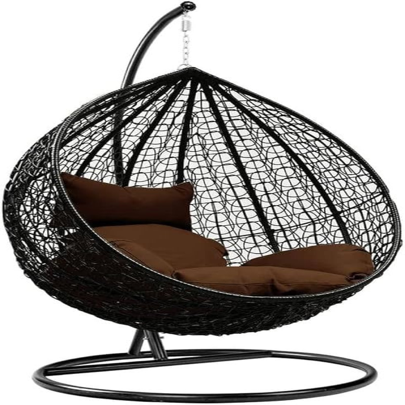 Alisha Craft Furniture Single Seater Swing Chair with Stand & Cushion Outdoor Indoor Balcony Garden Patio,Powder Coated Frame,UV Protected Wicker,Premium Cushion NS-17