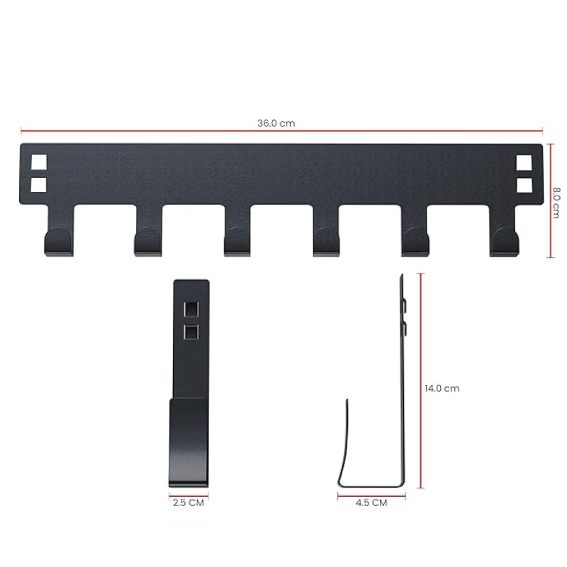 Amazon Brand - Umi Over The Door Hook Hanger, Hanging Organizer Rack Steel Door Hook Hanger Wall Hook Rack (6 Hooks) (Black)