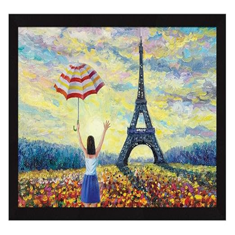 ArtX Paper Wall Decor Paintings with Frame for Home Decoration Eiffel Tower, Painting for Living Room - Framed Painting for Wall Decoration, 12.0 X 18.0 inches, Set Of 1