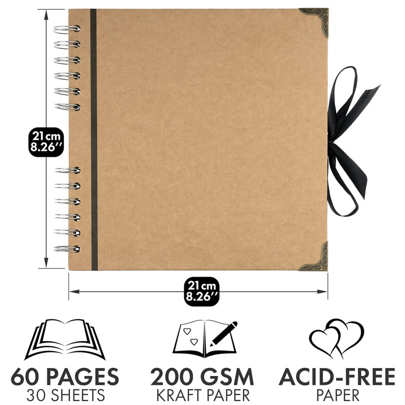 Bstorify Scrapbook Photo Albums Brown Thick Kraft Paper Scrap Book Ideal for Your Scrapbooking Albums Art & Craft Projects (Wedding), 60 Pages, Medium