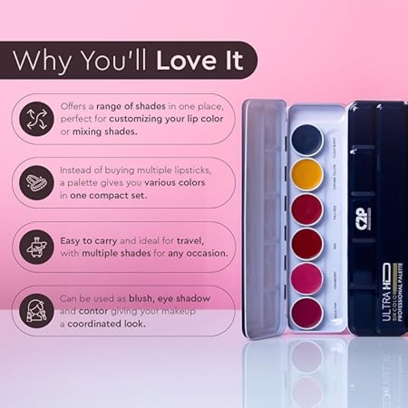 C2P Pro Pop Lip Shade 6 in 1 Lipstick Palette for Women – Waterproof, Long-Lasting, Smudge-Proof, Highly Pigmented Lip Pallete for All-Day Wear (Sunset Hues, 21g)