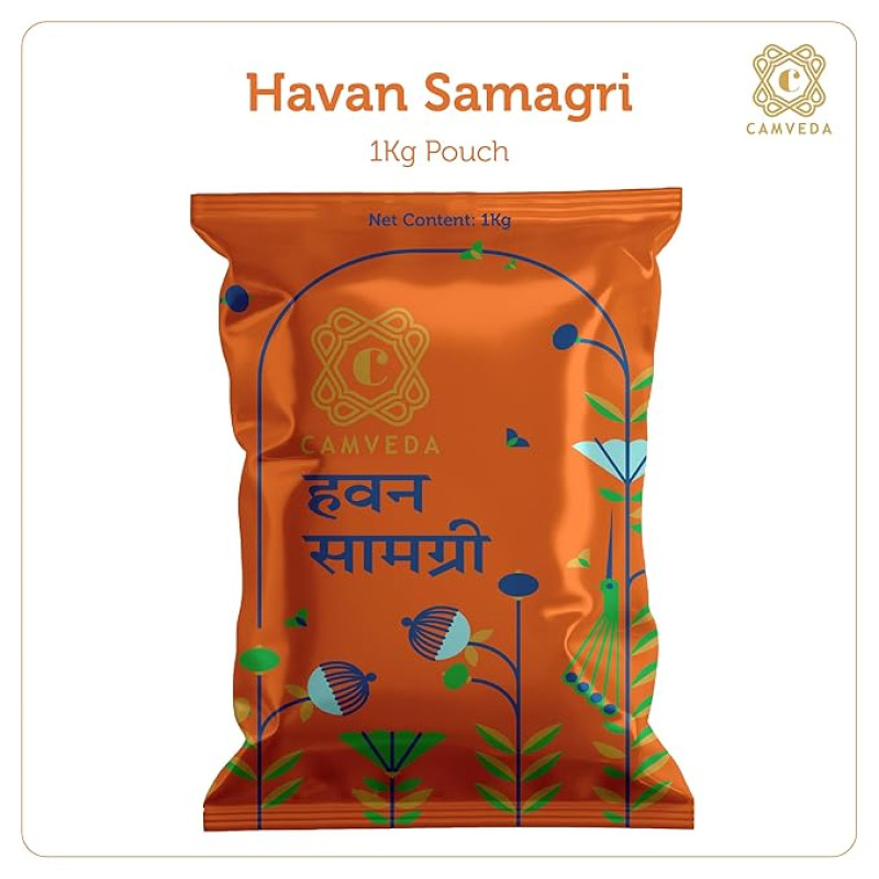 Camveda Hawan Samagri 1KG |100% Pure and Natural | Mixture of Various Dried Herbal Roots and Leaves for Vedic Yagya Pujan. Hawan Worship Pooja Samagri