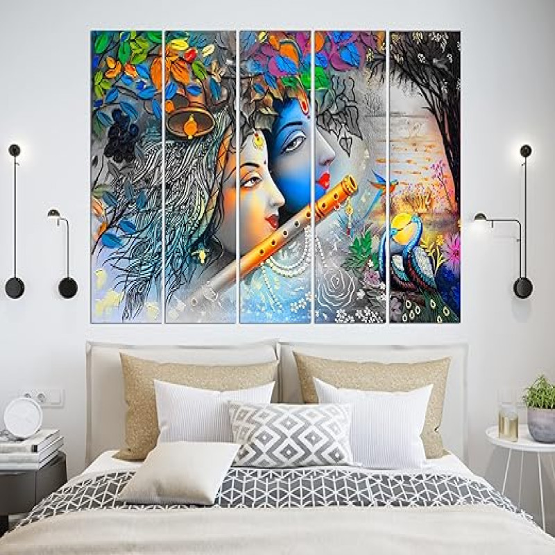 CN RETAILS Multiple Frames, Wall art Radha krishna Painting for home decor Living Room, Bedroom, Office, Hotels Wooden Framed Digital Painting (50inch x 30inch) mf531