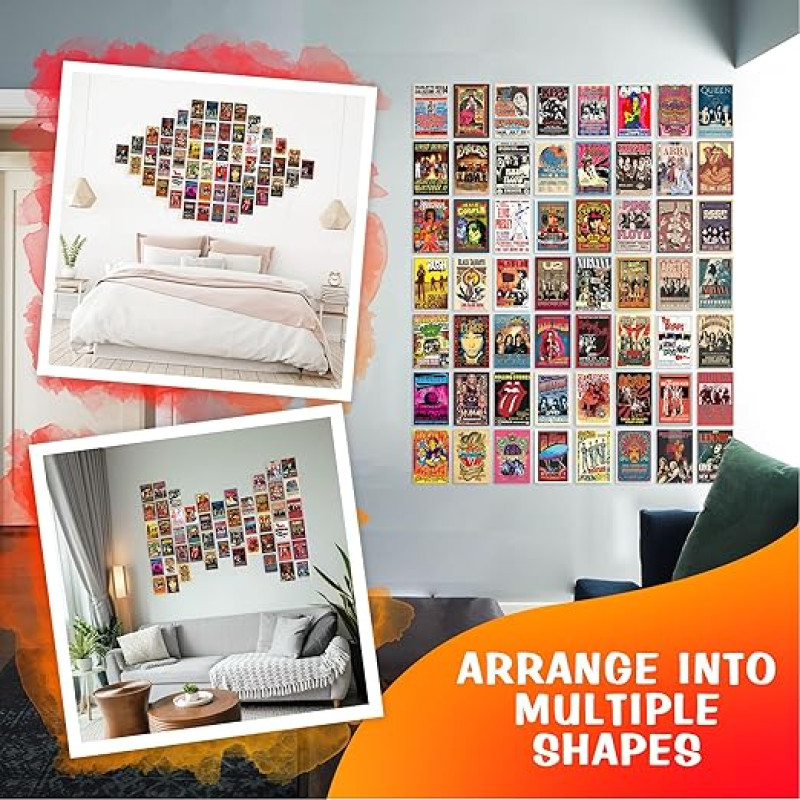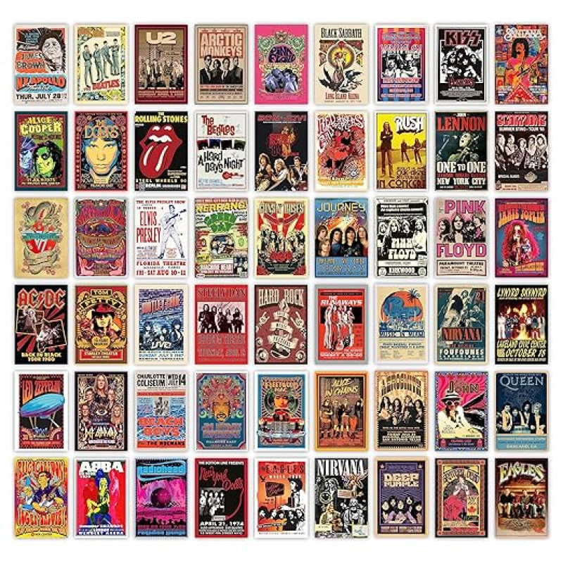 CodersParadise Pack of 54 Rock Band Wall Collage Kit Posters - 4 x 6 Inches Posters for Wall Decoration - Wall Art For Bedroom, Office, Living room, Dorm room - Glue Dots Included-Cardstock