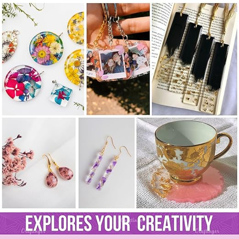 Craftinger Crystal Clear All in One Epoxy Resin 300gm for Art & Craft | Non-Toxic | Bubble-Free | UV Resistant | Glossy Finish | Ideal for Jewelry, Coasters, Trays & More