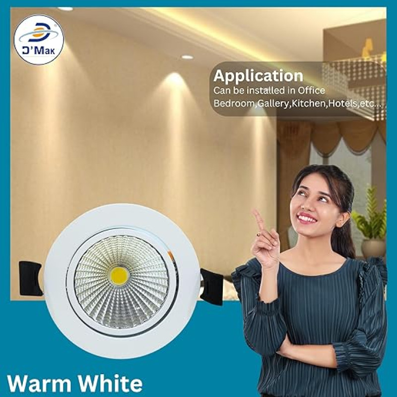 D'Mak Moveble LED COB Light | Recessed LED Ceiling Light for Indoor Lighting | Warm White Color | Aluminium Body (1, 12 Watt)