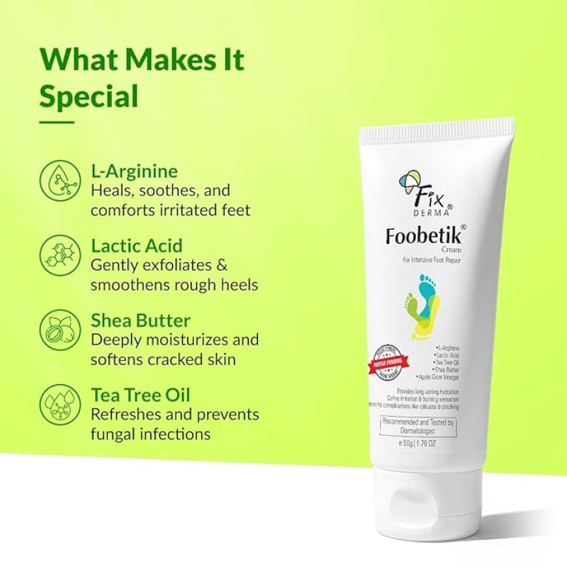 Fixderma Foobetik Cream, Foot cream, Foot Care For Diabetic, For Dry & Cracked Feet, Moisturizes & Soothes Feet, Heel Repair, For Calloused, or Chapped Skin, Paraben Free - 50g