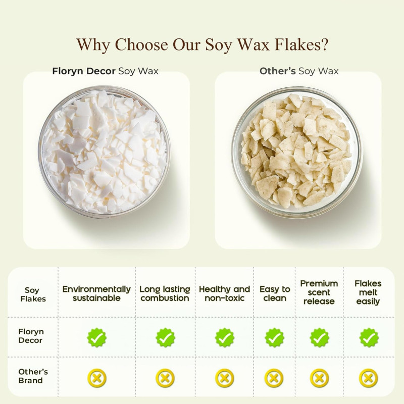 Floryn Decor® - 100% Pure Soy Wax for Candle Making | Natural Soy Wax | Vegetable Wax for Candle Making (Pack of 1 Kg)