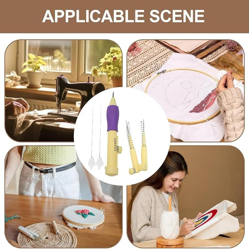 Gemsy Punch Needle Set for Embroidery with 3 Needles & Threaders – Adjustable Embroidery Pen – DIY Needlework Tool Kit for Dimensional, Ribbon, Satin Stitch, and Loop Embroidery