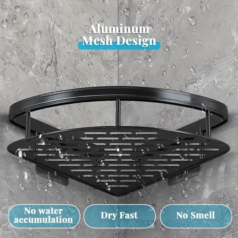 Hallstatt Self Adhesive Bathroom Corner Shelf for Wall Shelf Organizer Wall Mounted Aluminum Bathroom Shelves Rack Holder Stand for Bathroom Organiser Without Drill Accessories (Black,Pack of 2)