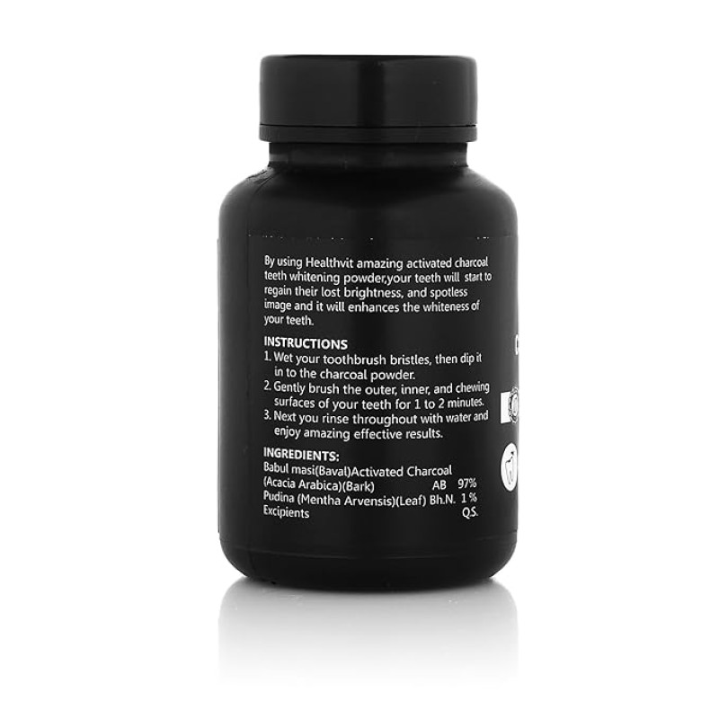 Healthvit Activated Charcoal Powder for Teeth Whitening - 20gm | Teeth Whitening Charcoal Powder | Bad breath remover | Enamel Safe Teeth | Oral hygiene products | Healthy Gums
