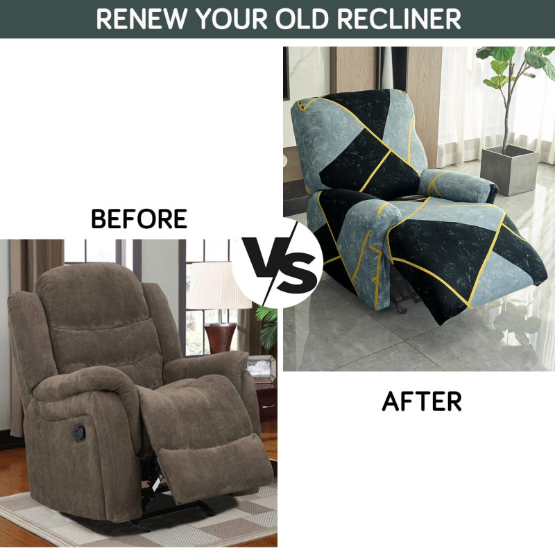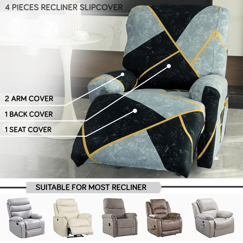 HOKIPO Polyester Blend 140Gsm Fully Covered Recliner Sofa Cover 1 Seater,Multicolor Abstract Geometry(Ar-4940-C10)