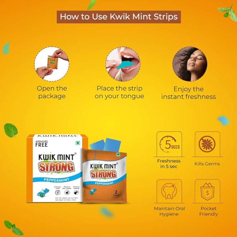 Kwikmint Premium Strong Sugar-Free Instant Dissolving Mouth Strips | Paper Mint Mouth Freshener for Fresh Breath, Fights Bad Breath – Pack of 4 (352 Strips)