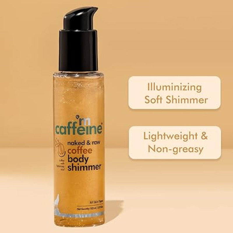 mCaffeine Coffee Body Shimmer for a Glam Ready Skin with Hyaluronic Acid | Soft Glitter & Oil-Free Hydration | Lightweight & Non-Greasy Body Shimmer for Long-lasting Shiny & Matt Finished Look
