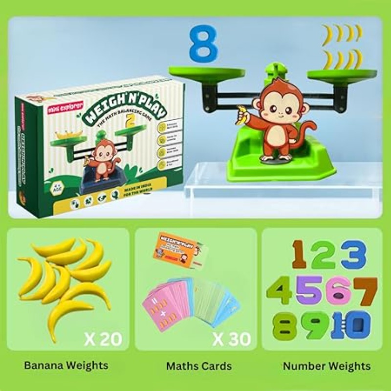 MiniExplorer 2 in 1 Monkey and Banana Balancing Toy for Kids with Educational Math Counting Number Learning Activity Toy Engaging Preschool Game Children's Gift for Boys Girls 3 4 5 6 7 8 Years