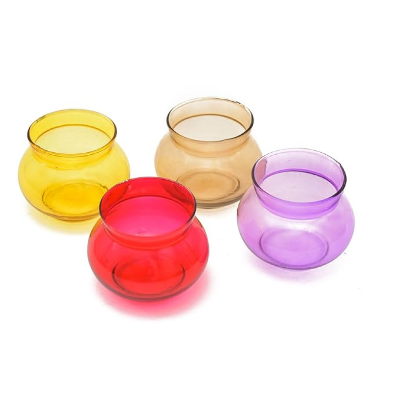 OGGN Glass Handi Candle Holder Set/T-Light Holder for Diwali Decoration Items, Multi (Pack of 4)