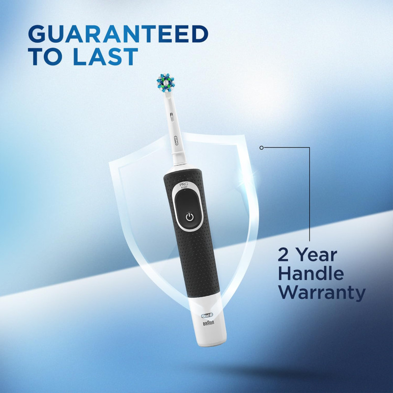 Oral B Vitality Rechargeable Rotating Electric Toothbrush for Adults, 2 Brushing Modes (Daily & Sensitive), 2 Min Timer with Quadpacer, 2 Year Warranty, IPX7 Water Resistant, Round Brush Head, (Black, 1)