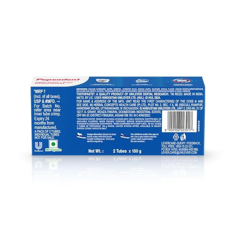 Pepsodent Germicheck 300g (150g x 2, Pack of 2) 8 Actions, Whole Mouth Cavity Protection Plaque Removal Toothpaste With Anti-Germ Formula, Clove And Neem Oil, Jumbo Save Pack