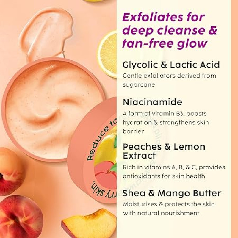 PLIX - THE PLANT FIX Peaches & Lemon Detan Bump Eraser Scrub (200g) | Removes Tan & Restores Skin’s Moisture, Reduces Dark Spots, Uneven Skin Tone, & Reveals Softer Smoother Skin