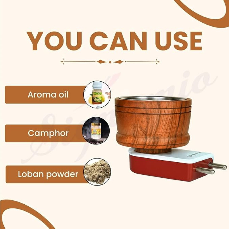 SIGNAMIO® Kapoor Kapur Dani Camphor Karpuram Bakhoor Oud Aroma Oil Diffuser Incense Dhoop Burner Electrical Stand Machine for Home Fragrance Room Freshener -DN-1, Sheesham Wood