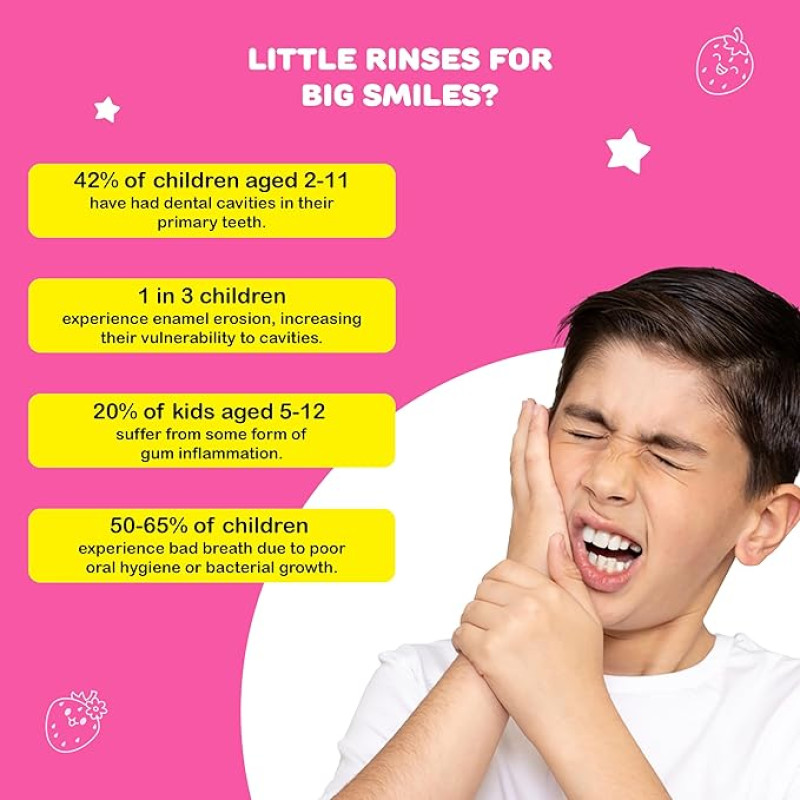 SmiloShine Kids Mouthwash – Juicy Orange/Lemon Lime/Strawberry (180ml) (150, Strawberry Flavour)