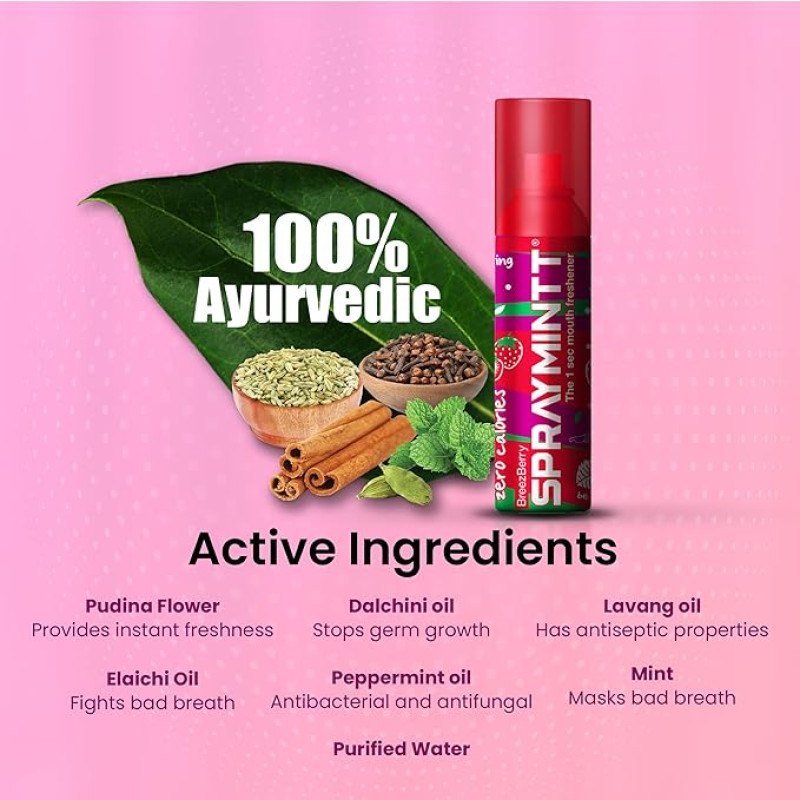 Spraymintt Mouth Freshener | Mukhwas | 175+ sprays of instant long lasting with Zero Calories Freshness | Icymint flavour + Brezeberry flavour | 15g - Combo of 2