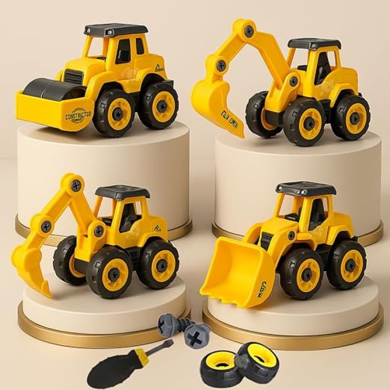 Storio Mechanical DIY Construction Engineering Car Toy Set of 4 | Kids STEM Sand Toys for Toddlers Age 3-5, Building Sandbox Toys Truck, Birthday Gifts for Boys 2 3 4 5 6 Year Old - Set of 4