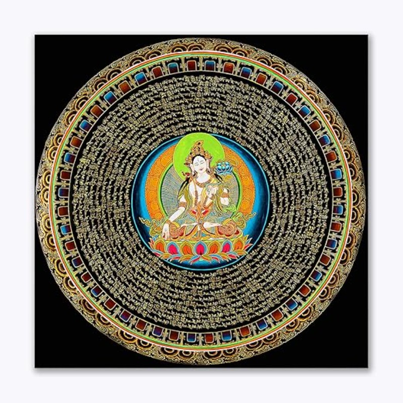 Tamatina Thangka Canvas Painting - Traditional Art - Goddess Tara In A Golden Sky - Tribal Paintings