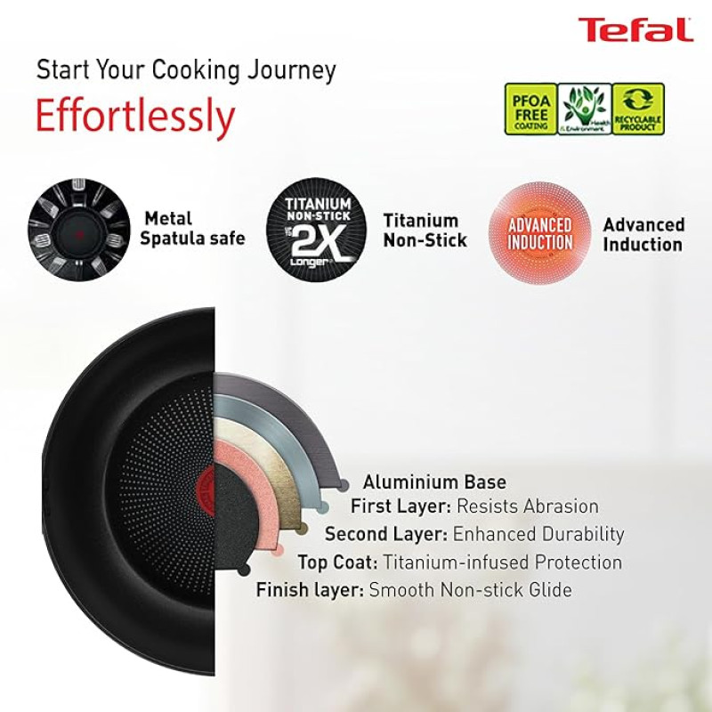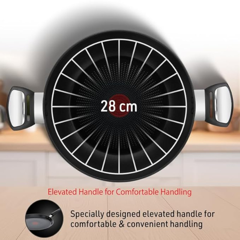Tefal Cook & Savour Non-Stick Kadhai with Lid/Thermo-Spot Technology/Titanium Non-Stick Coating / 28 cm/Superior Induction Base/Suitable for All Hob Type/Black / 2 Years of Warranty