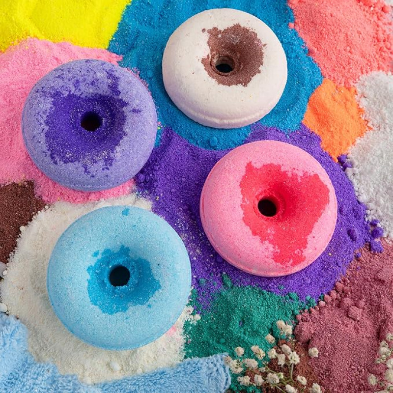 THE BODY BUCKET - Aqua, Rose, Lavender & Vanilla Donut Bath Bombs | All Natural Handcrafted with Aromatic Fragrance - Bath Gift for Kids, Men & Women– 65 gm each (Pack of 4)