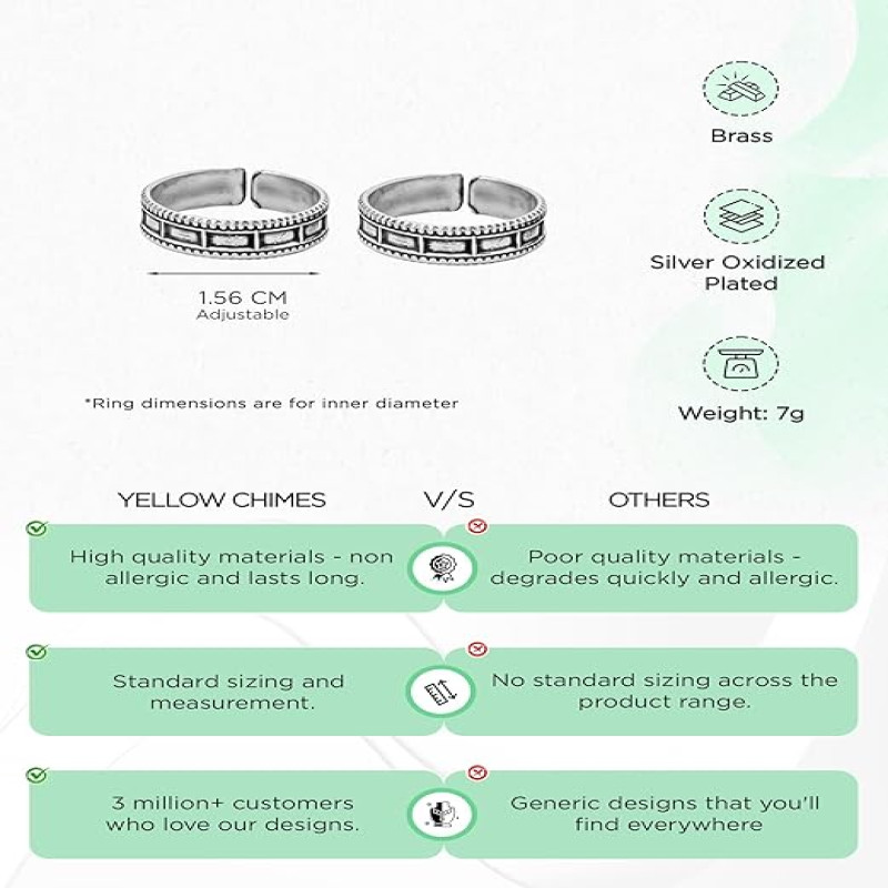 Yellow Chimes Toe Rings for Women | Traditional Silver Oxidised Toe Rings Set | Bichiya for women Combo | Accessories Jewellery for Women | Birthday Gift for Women Anniversary Gift for Wife