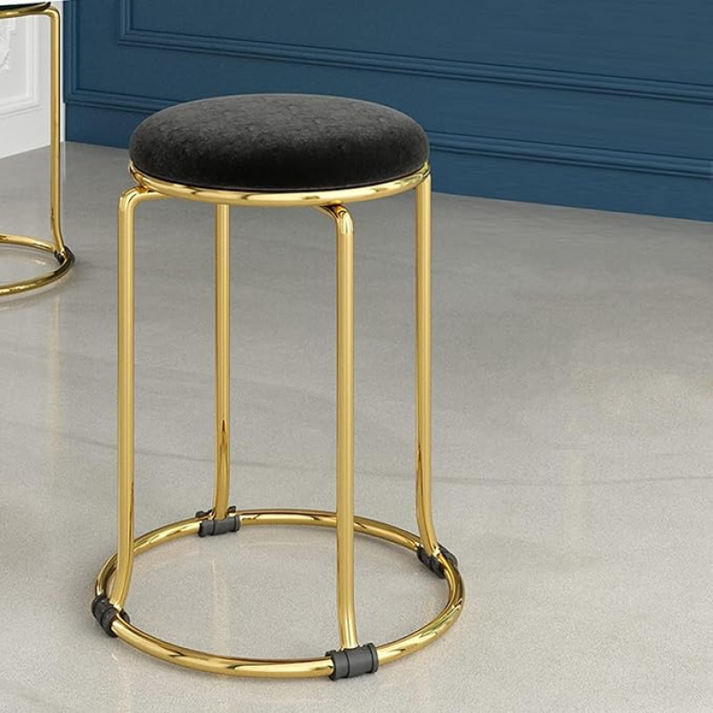 Akifi Craft Flannel Round Stool - Versatile Stackable Chair for Dining, Living Room, and Shoe Changing - Elegant Metal Low Stool for Home Furniture (Black, 2)