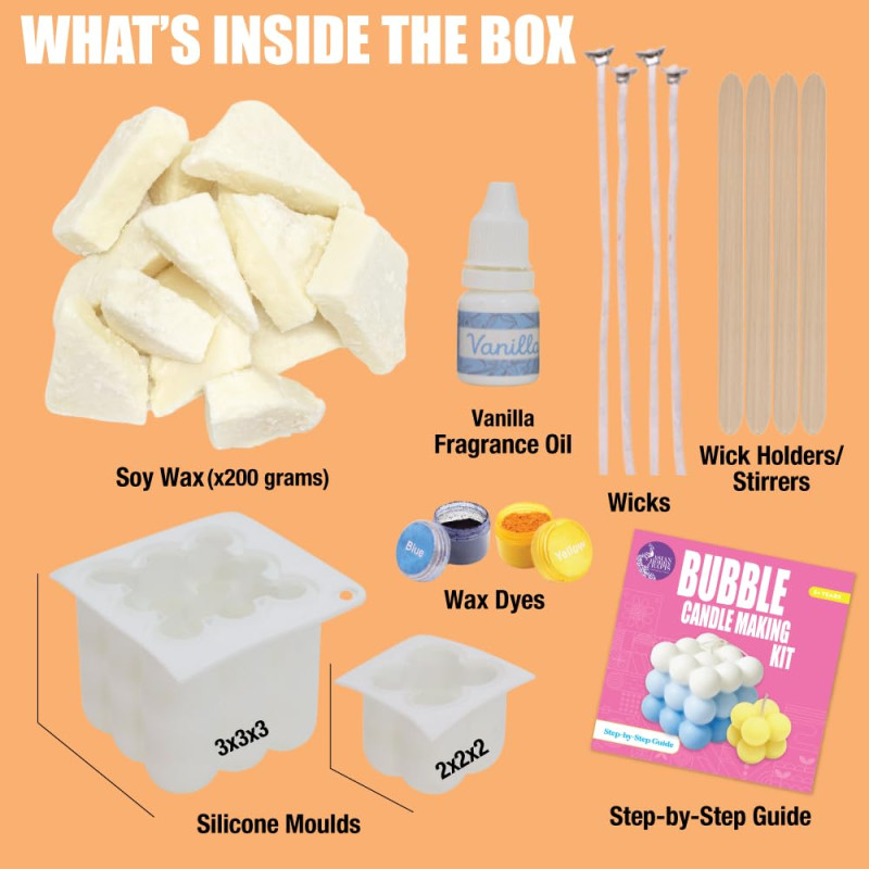 Asian Hobby Crafts DIY Scented Bubble Candle Making Kit for Beginners – Art and Craft Kit for Kids and Adults with Soy Wax, Wicks, Fragrance, Pigment Colors, Tools for Home Decor and Gifting