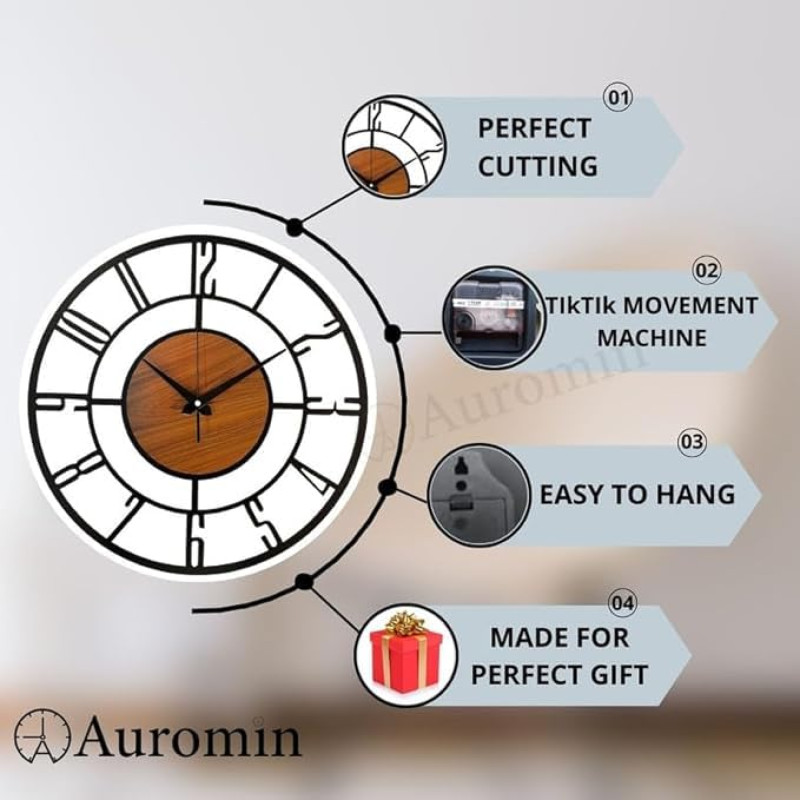 𝗣𝗿𝗲𝗺𝗶𝘂𝗺 𝗠𝗮𝘁𝗲𝗿𝗶𝗮𝗹: Our aesthetic wall clock is made from durable, high-quality metal with wood. This hanging analog wall clock is built to last and stay strong. A big size wall decor item for living room is great for everyday.