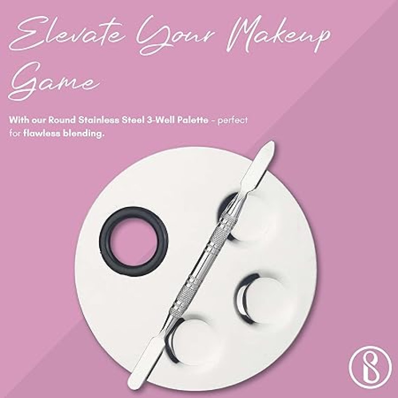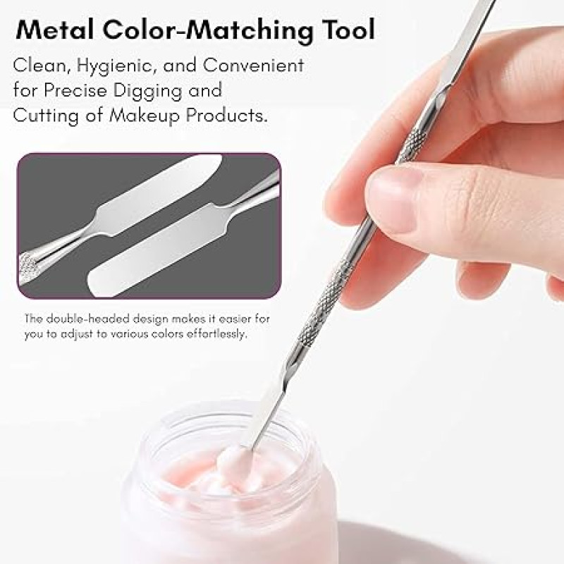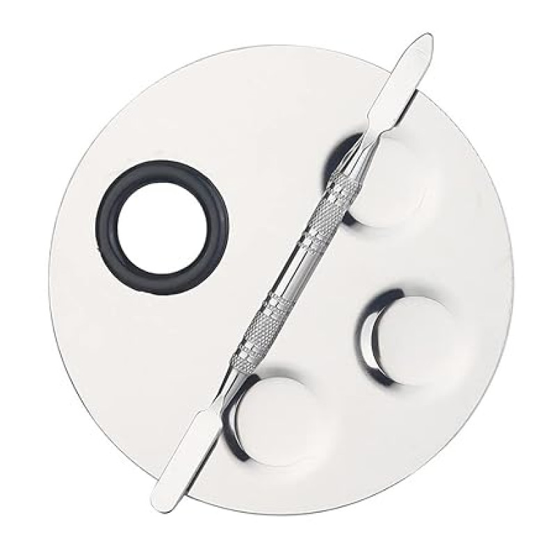 Practical acrylic makeup palette and metal spatula kits, perfect for mixing foundation, eye shadow, eyelash, lipsticks, nail art, concealers, pigment colors and so on.