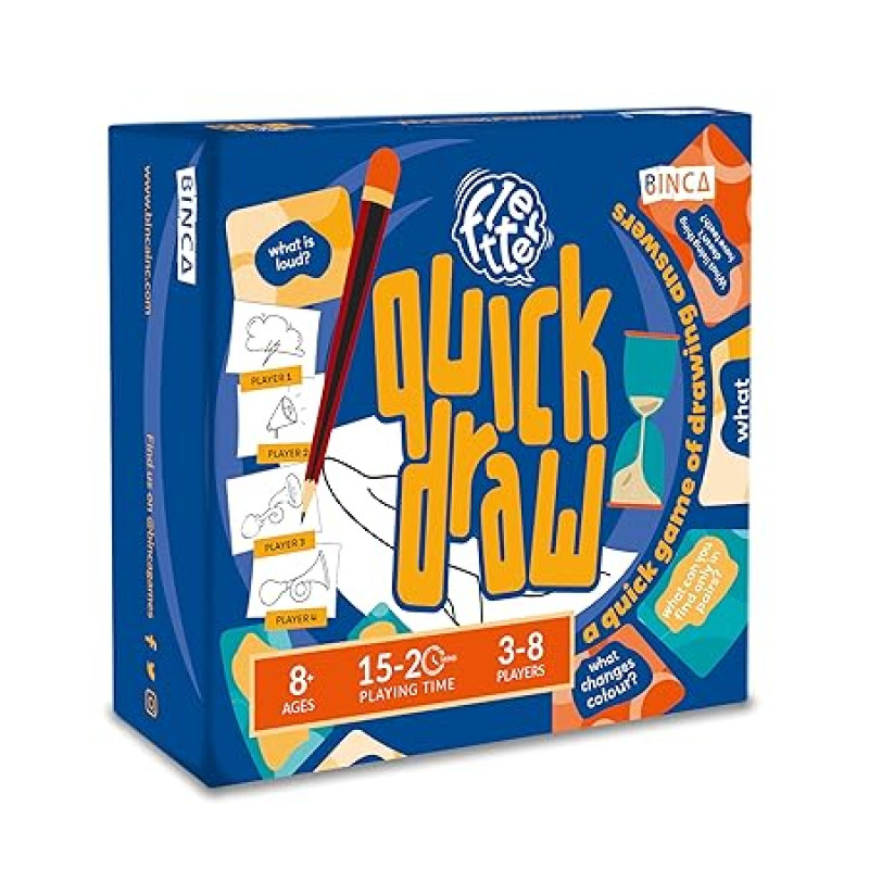 FAST-PACED DRAWING GAME: Binca Fletter Quick Draw is a fast-paced and hilarious drawing game that brings endless fun to family game nights. Simple to learn but challenging to master, this doodling game assures creative thinking, endless laughter, and friendly competition for both kids and adults.
