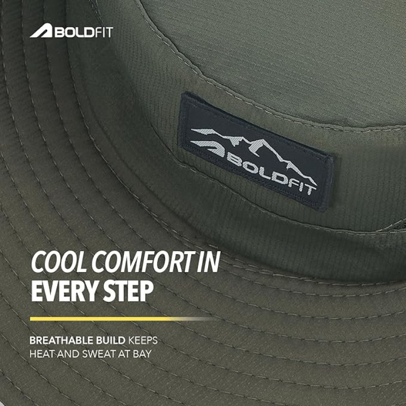 Boldfit Unisex Sun Hat for Men & Women with UPF Protection Wide Brim Outdoor Adjustable Fit, Breathable Fabric, Moisture-Wicking & Packable Design-Ideal for Hiking, Trekking, Fishing, Beach & Travel