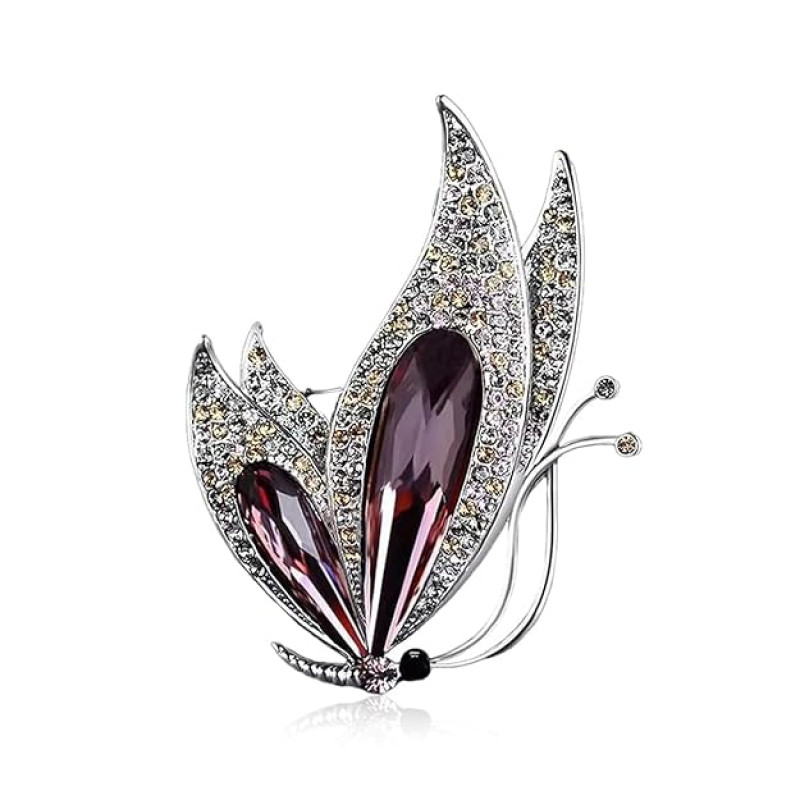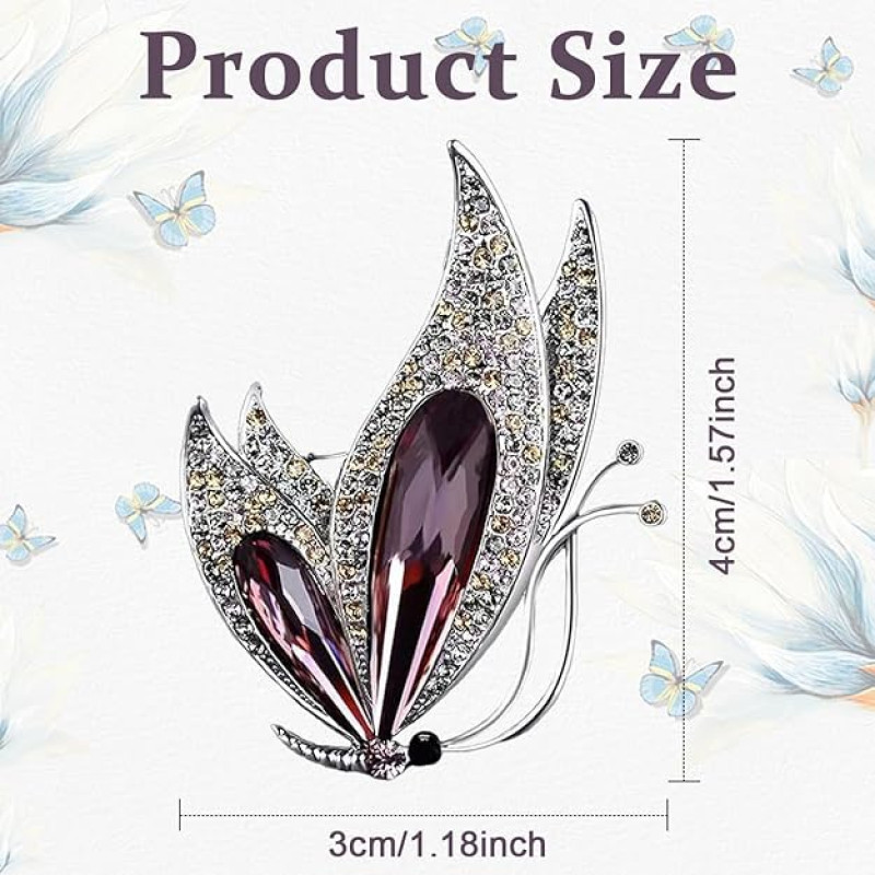 SPARKLING RHINESTONES DESIGN: Adorned with sparkling silver and purple rhinestones, this fashion women brooch adds a luxurious touch to your attire. The rhinestones are meticulously chosen to create a beautiful contrast against the alloy construction, reflecting light and creating an eye-catching effect. The combination of silver and purple rhinestones provides a stunning color palette that goes well with various outfits.