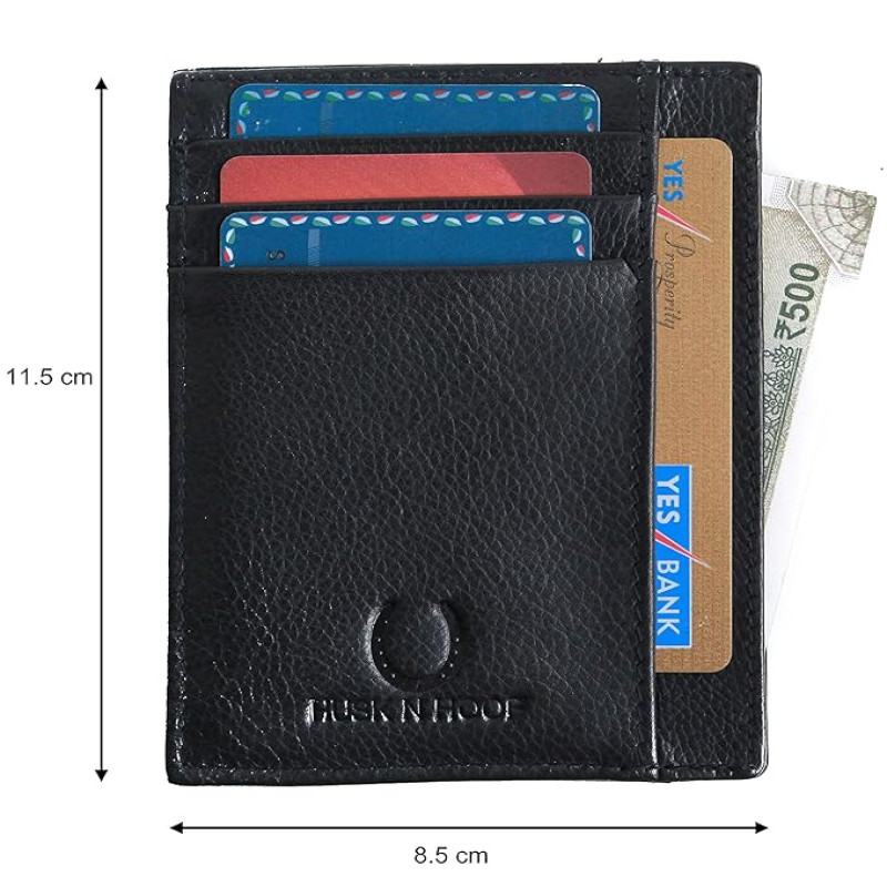 FEATURES : This atm card wallet for men is 11 by 8 cm and has 1 cash, 6 card, 1 ID slots.