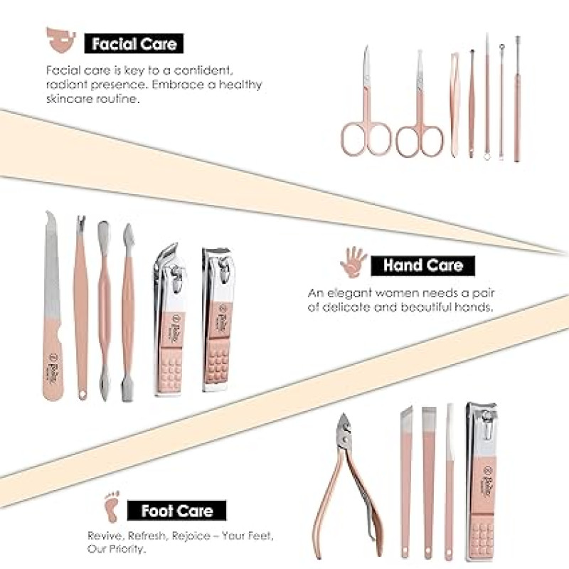 Premium & Durable -Beauté Secrets Nail clippers kit is made of high-quality stainless steel. The tools are all sharp and highly-durable without rusting. Different tools are designed for different use (for face, hand and foot). Our purpose is to provide a comfortable and sound life for you.