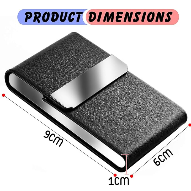 Dimension :9 x 1 x 6 Cm , Suitable for most standard business visiting card, can store 25 Business and visiting card around ,7 bank cards. easy to carry.