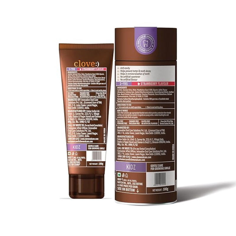 NATURAL FLAVOUR : Clove Kids Toothpaste comes in a natural strawberry flavour and has no artificial flavours and no sweeteners