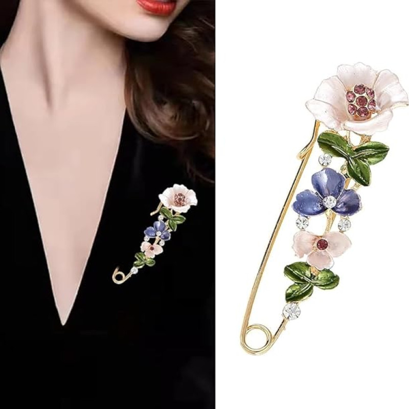 Fashion Luxury Rhinestone crystals and flowers Safety Pin Brooch Jewelry