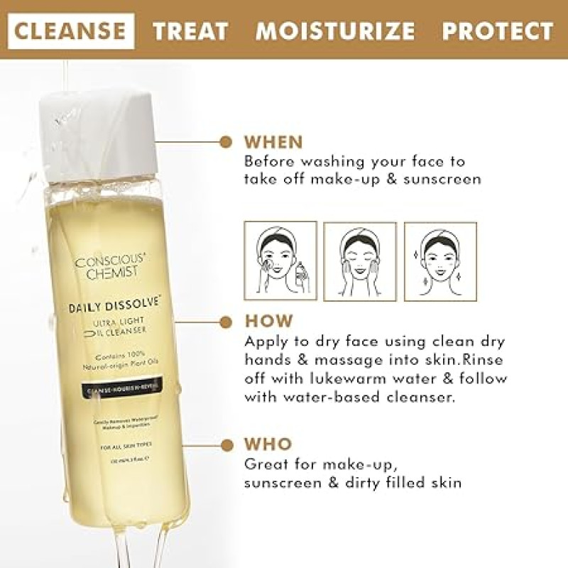 Conscious Chemist Makeup Remover Oil Cleanser|130 Ml|Face Wash, Cleanser Oily Skin, Makeup Remover. Men & Women. Removes Waterproof Makeup, Spf & Impurities. Soft & Glowing Skin - Daily Dissolve