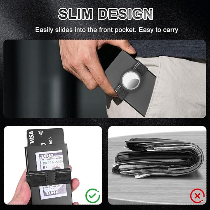 【 Elastic Cash Band with AirTag Holder (AirTag Not Included) 】: Durable elastic cash strap securely holds bills and includes a built-in AirTag holder made from flexible, hypoallergenic silicone. Easily insert or remove your AirTag in seconds to track your wallet anytime.