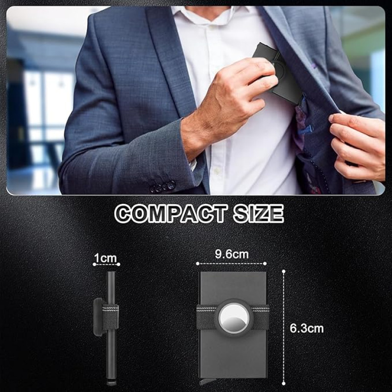 CoolShef Pop Up Wallet for Men with Elastic Band and AirTag Holder, RFID Blocking Slim Metal Credit Card Wallet, Minimalist Pop Up Card Holder for Men, Smart Wallet Holds 6 Cards