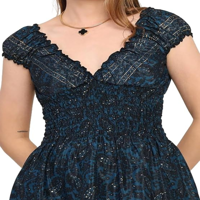 - NAME:-KE KANHA EXPORTS Short Dress for Women's & Girls Unique Border Design & Tassel, Adjustable Drawstring, Stretchable, Free Size ,fit Flared Floral Print V-neck Western Dresses All Seasons