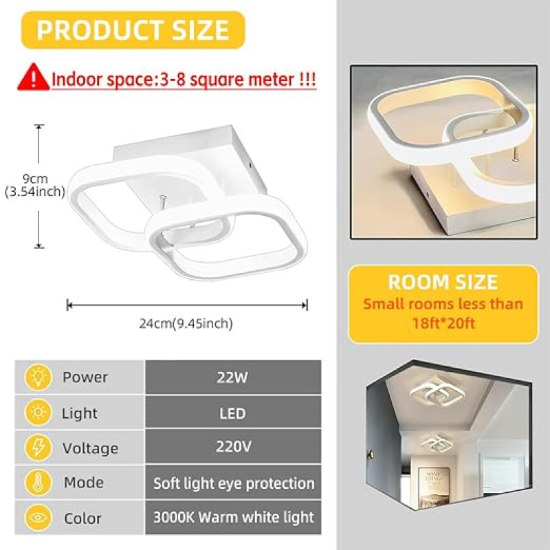 SUITABLE FOR SMALL TO MEDIUM SPACES: The size of the small ceiling light is 9.45 inches x 3.54 inches, Ensure it perfectly fits your room by measuring your space before purchase. Optimize your lighting for rooms between 3-8m² with this sleek ceiling light. Its modern geometric design provides superior lighting and charm. Bring modern style and unparalleled illumination to your home with this perfectly proportioned fixture.