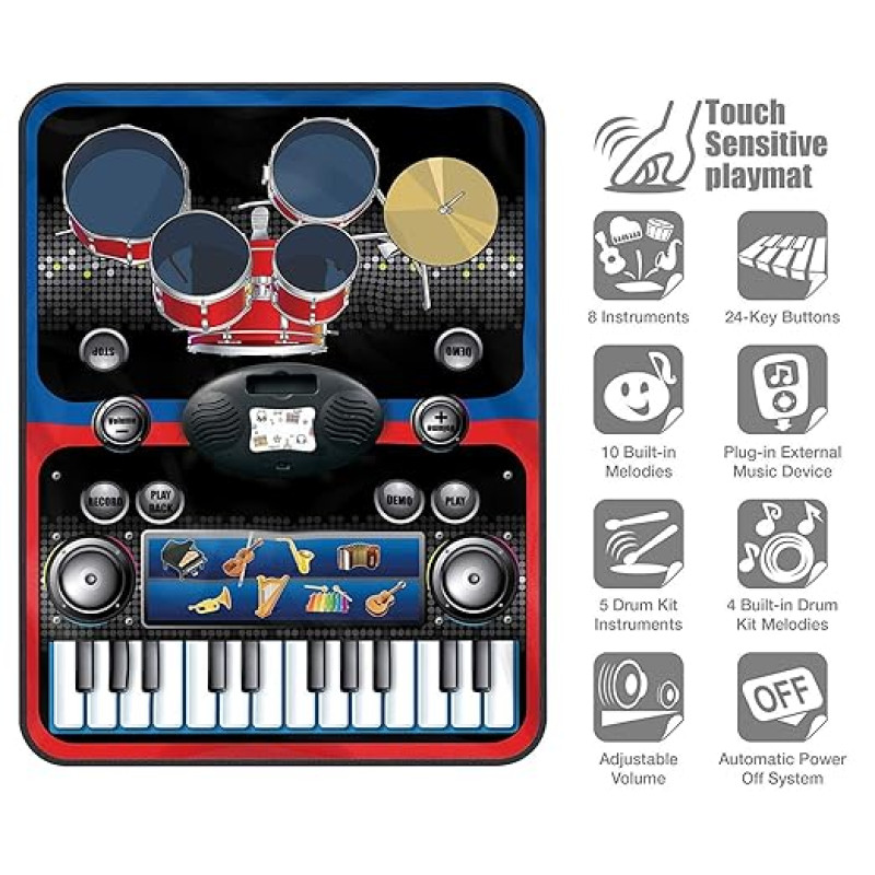 It includes 8 Instruments, 24 Key Buttons and 10 Built-in Melodies