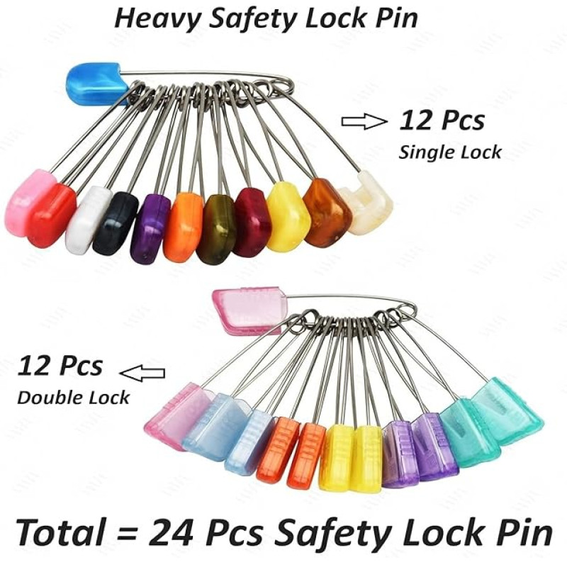 ✓ Set of Multicolor Single Lock Double Lock Combo Nappy Clothes Dresses Safety Saree Pin Brooch which Matches with all Sarees plates, Dupatta, lehanga choli ,Chunri, Odhni or scrafs and hijabs.